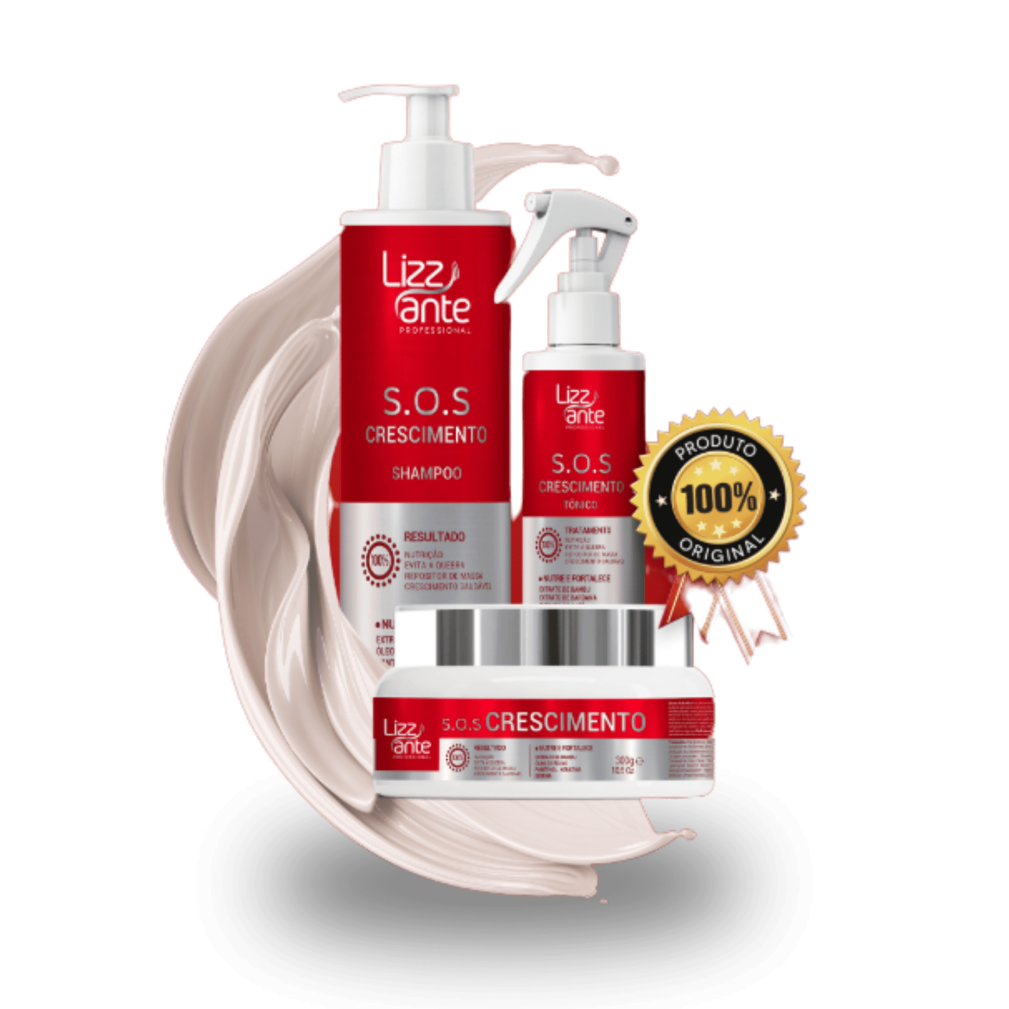 O Kit S.O.S Crescimento é um tratamento completo com 3 produtos. Primeiro, possui shampoo fortificante. Depois, máscara nutritiva intensiva. Finalmente, tônico capilar acelerador. Juntos, eles revolucionam seu cabelo.